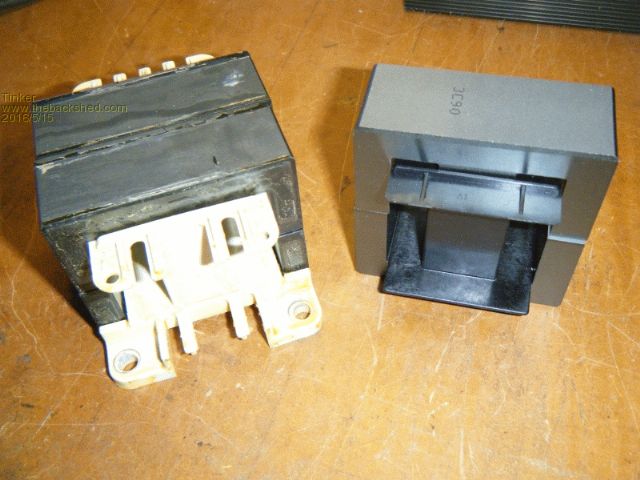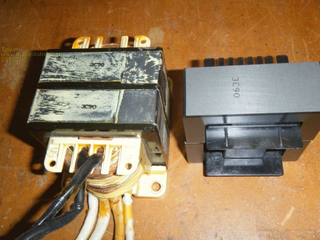 It has the same number stamped on the core as the newly purchased E core pictured next to it. So I assume its magnetic properties are similar. But its a dual (stacked) core with a considerably bigger (875mm sq against 529mm sq)cross section. I think that should work even better, bigger is better I think .