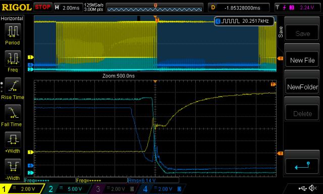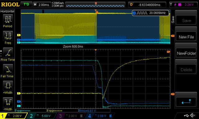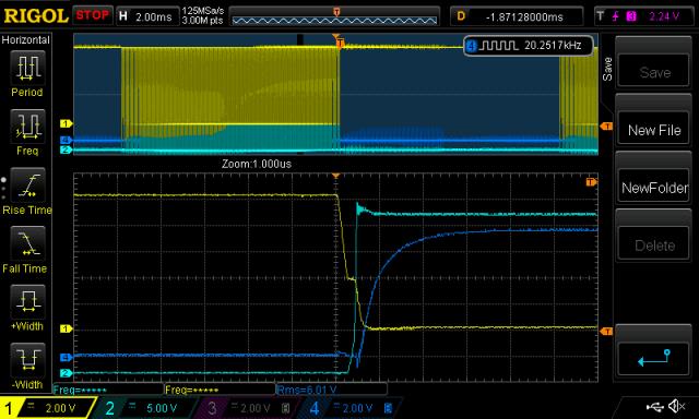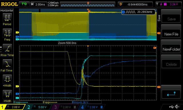 Poida Great post mate. Amazing timing - I've been working on dvdt this week. What I have found is that dvdt can cause minor shoot-through at quite slow changes in Vdrain (and less so Vsource). Much slower that the data sheets suggest. I have included in my driver board a clamping FET which directly clamps the Gate (200 mOhm) to ground and it will still experience some turn-on, via Cgd. I can reduce the shoot-through, say of the lower fet, by slowing down the turn on action of the upper fet, particularly until Vthreshold. I did this by adding an inductor in series with Rg, which I also increased in value. You could also do this by adding more inductance to the load. I am very jealous of your CRO, and diff probes. Which diff probe are you using?. I am about to try a different drive circuit where I clamp the gate to -5 or -12 volts. The reason I'm doing this is that it will take a lot more charge from Cgd before Cgs charges up to its threshold voltage. I believe it is important to get this right at no load, because High loads are likely to be inductive and will slow dvdt, its at no load that dvdt will show it affects and possibly will cause destruction of the mosfets. Cheers Andrew |