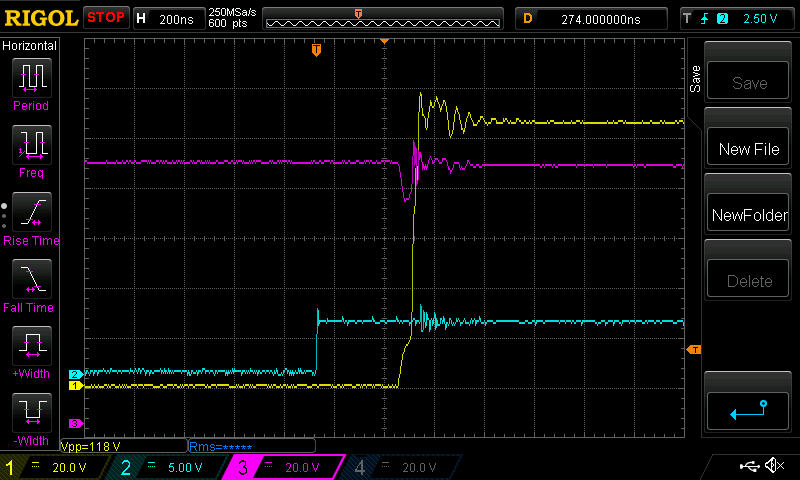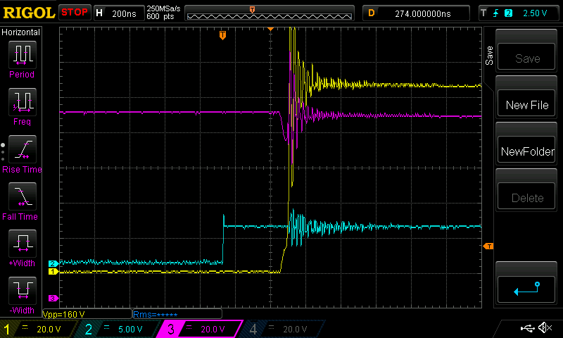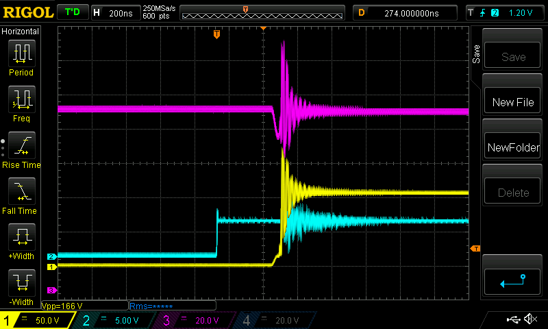 SYM-1: here are two pdfs I find most educational on ringing. H2PToday1803_design_TexasInstruments_Part 3.pdf and a practical worked example AN045_EN.pdf here are the gory details: ![]() Coss2 is the diode capacitance. I suspect the HY5110 has a lot more and so when in circuit the ring frequency is a lot lower. But maybe the Q factor is lower so it does not ring so much. wronger than a phone book full of wrong phone numbers |
