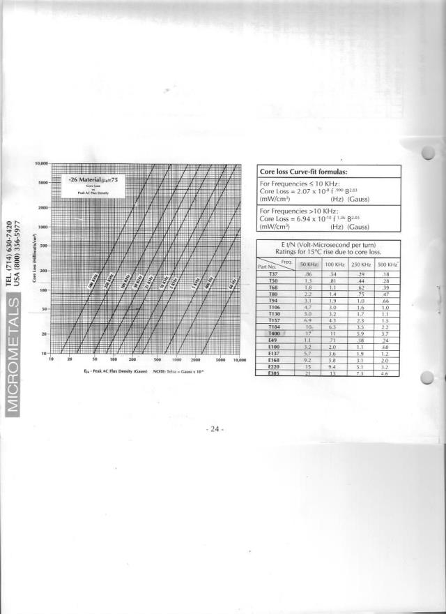 Thanks Tony, I went to the Micro-Metals site and down loaded their data sheet. It looks like the 52 material is better at 50KHz and above, I might get a couple of these and try them out. Who knows if they are as good.... Mike |