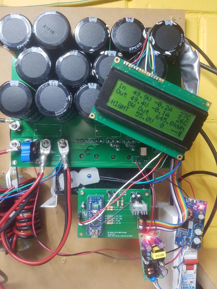 Ryanm: pretty much no changes are needed. The basics are the caps and resistors etc. The FETS are still the 150V type in the parts list. I prefer the FDH055N15A FETS since they are 150V and work well. Diodes can be 150V or 200V or more dual types in TO-247 package or use HY5110 FETs as diodes which is what I do. I have come to the point where I very much prefer using TTL serial data to communicate with the LCD. I find I2C interface to be quite susceptible to EMI and that it can lock up the nano in some cases. TTL serial data via softwareserial library or in the current firmware's case, fully synthesised 9600 baud TTL data is reliable as brick sh#thouse and just as tough. The large caps can be nearly anything. The Aliexpress sourced 100V 10,000uF caps do not like 105V or more and get hot and bothered. Combinations I have tried that work fine: 5 of 450V caps at 470uF or whatever on the input. And one 100V 10,000uF cap on the output and about 9 x 450V 450uF in input and 5 x 450V 470uF on output. and mixed 470uF or 540uF 450V on both input and output. We need a good amount of good quality caps that can handle some ripple. I tested a board with minimal input caps. With 3 only 450V 470uF caps on the input, these 3 caps got warm to the touch after a few minutes of 1kW+ work. Using only 1 x 100V 10,000uF Aliexpress Chinesium cap on the output was fine and that cap never got warm. Always the control loop was stable and the program worked perfectly. wronger than a phone book full of wrong phone numbers |