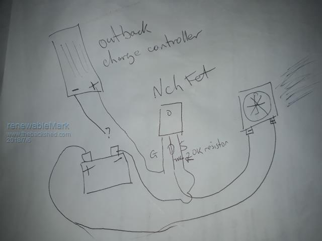 If you change your mind Mark about the fans a N Channel MOSFET with the gate connected to the + output of the charge controllers auxilary and a 20K resistor across drain and source to keep it off when it should be will work. You then connect the negative from the fans to the MOSFET Drain and the source of the FET to ground. A 12V power supply between ground and fans + and your in business.