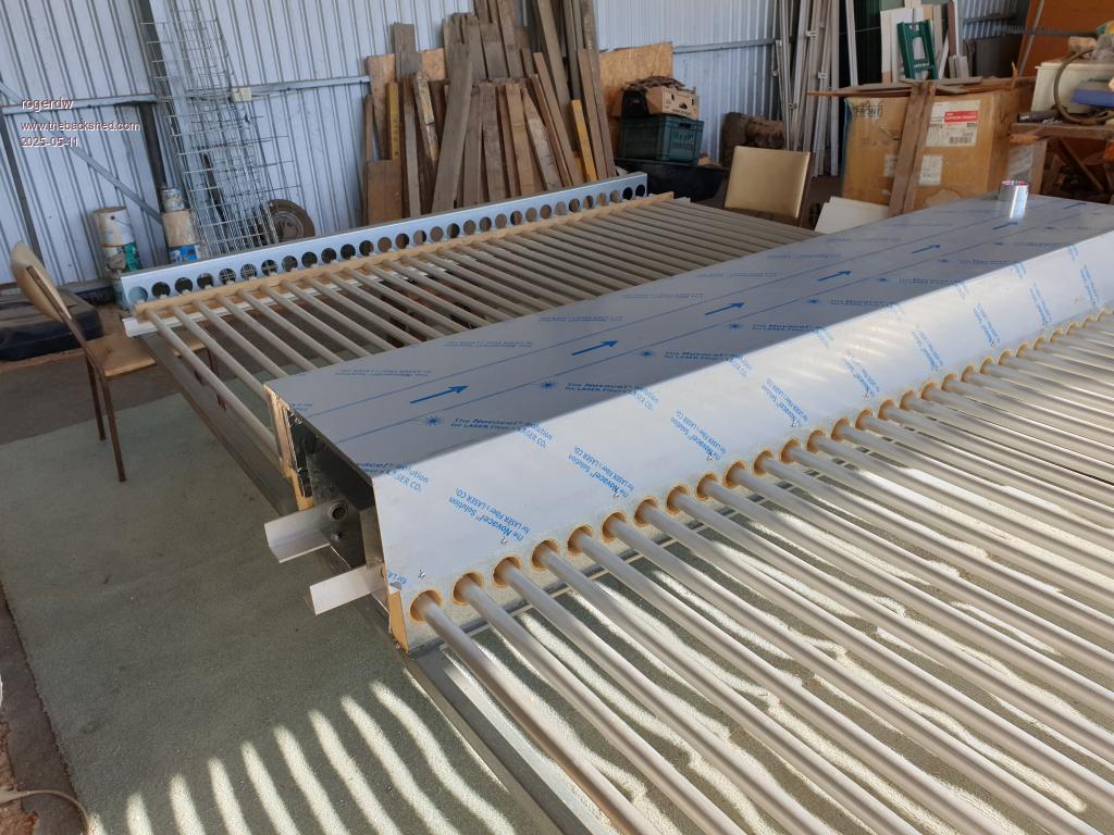The 60 evacuated tubes weigh 132kg alone, though I will take them up seperately once it is on the roof. No point taking chances with smashing them.