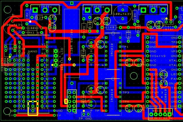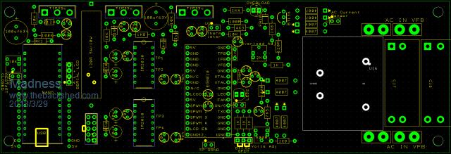 I have completed the new version of the control board and have done a preliminary check but would appreciate if anyone out there interested could check these for me also please. The circuit should be identical to Oztules latest version except for the Arduino Nano that I have added to for Low voltage shut down. I have made more use of the top side than Oztules version as he did this originally with the intention of DIY single sided PCBs. ![]() ![]() ![]() ![]() There are only 10 types of people in the world: those who understand binary, and those who don't. |