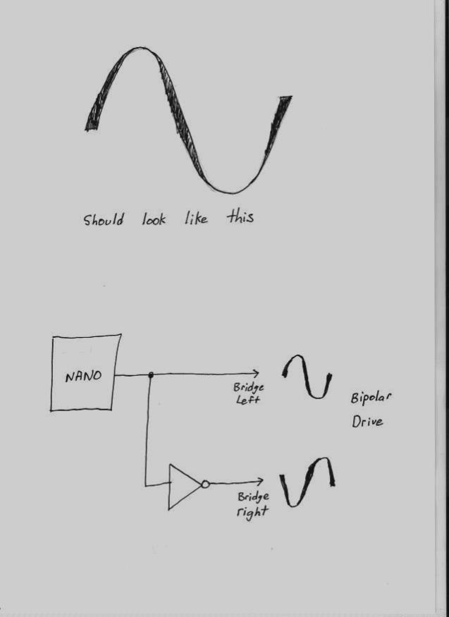 Bipolar PWM should look like two full complete sine waves but 180 degrees out of phase at 50Hz. What comes out of the bride will be two complete sine waves each of half the total final amplitude. The main feature of this is that the transformer is driven with a pair pure clean uninterrupted sine waves with very little harmonic distortion. There are none of those freakish violent phase reversals at the zero crossings. Cheers, Tony. |