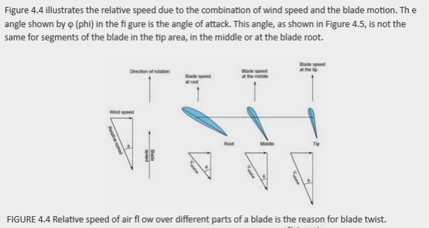 Now what we want is laminar airflow over both sides of the blade with a fairly small angle of attack, which gives us the optimum lift drag ratio right along the whole width of the blade. Drag is important, because it acts as a brake on our rotor slowing it down and consuming power we would otherwise be able to use as useful torque.