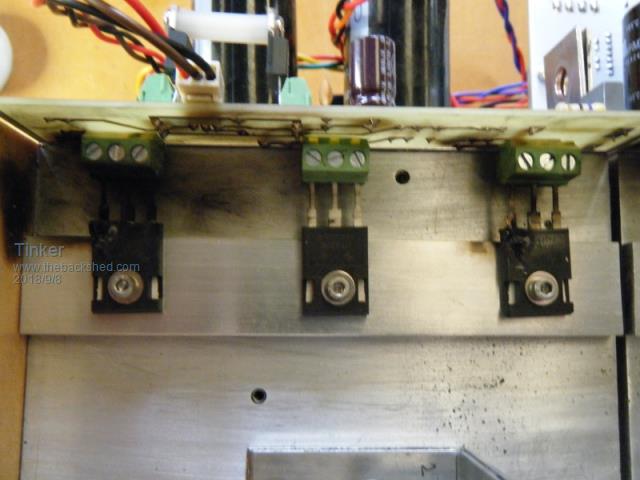 Brilliant idea Gary, it could add extra heat sinking too .What I found interesting is that despite the mosfet legs were left at their full length they survived, the blow occurs inside the body. I suppose the mess left on the PCB with the short mosfet legs you solder guys have would be much worse .Klaus |