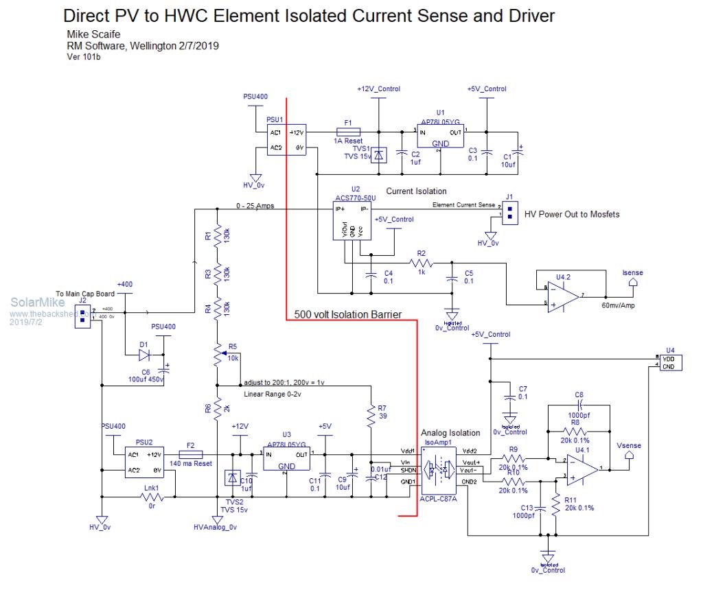 Quite a discussion going on there around the ultra simple circuit; unfortunately the version I'm building has to be semi-commercial in that its going into three sites, one being a community business. So the design has to be idiot proof safe and meet certain standards, any of the parts that users can play with have to be isolated from the 300-400 volts high voltage pv array; I also want it self adjusting to adapt to whatever panels are used without adjustment.