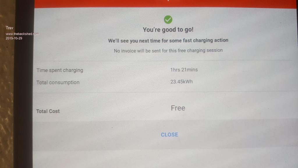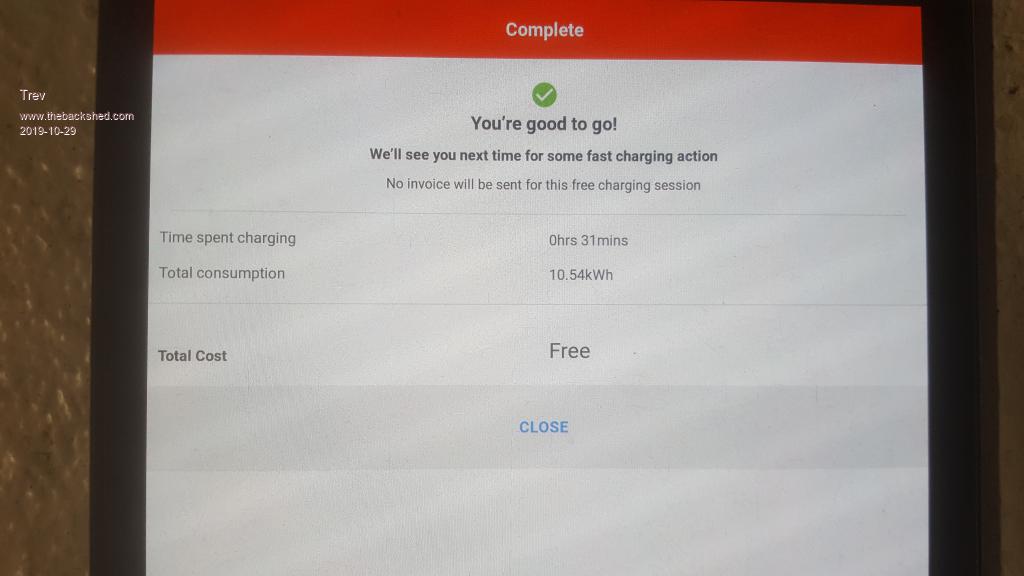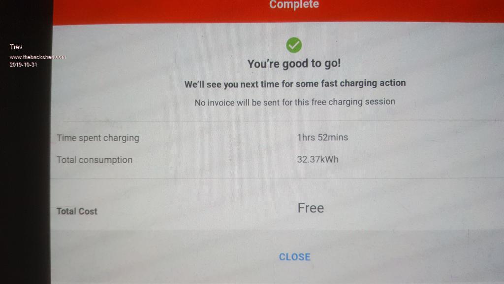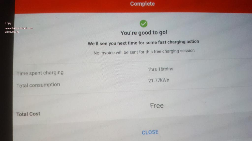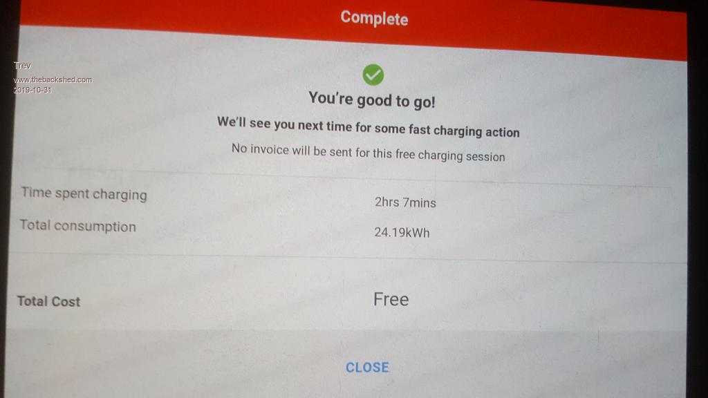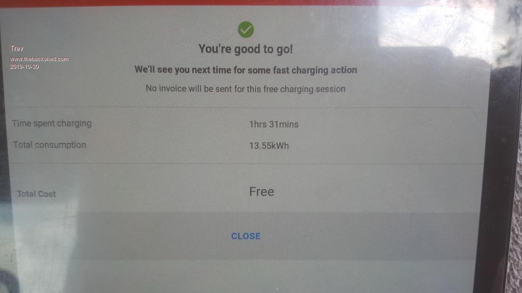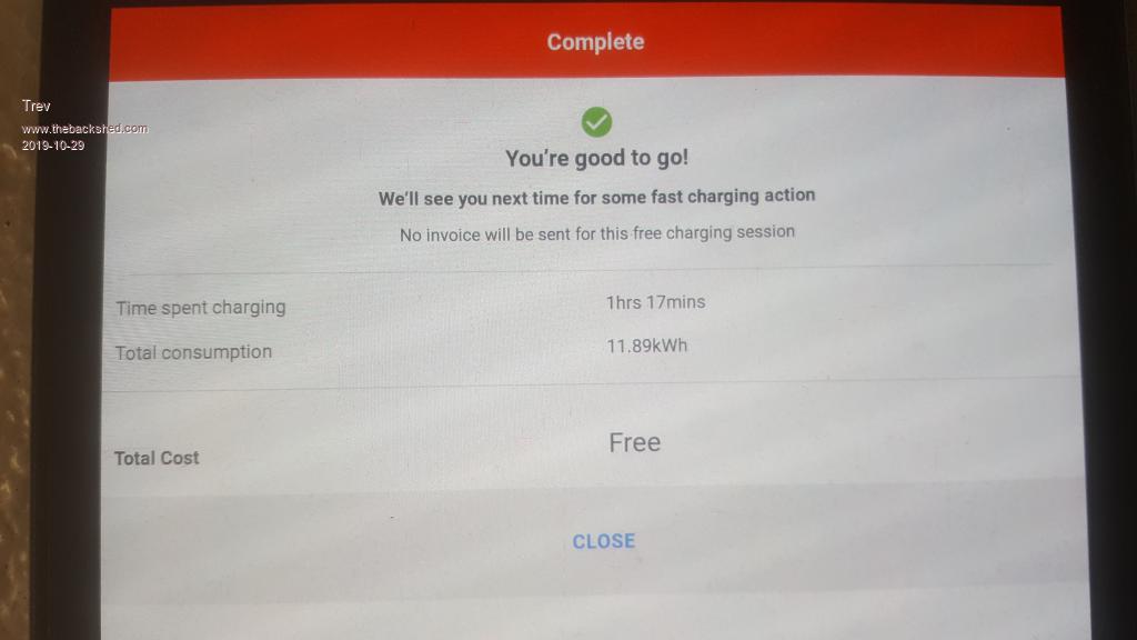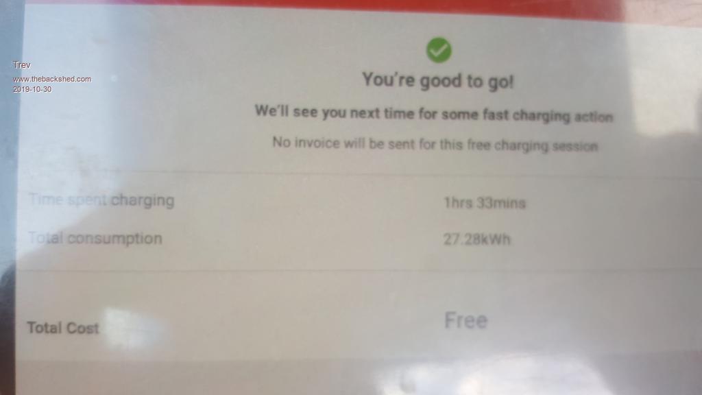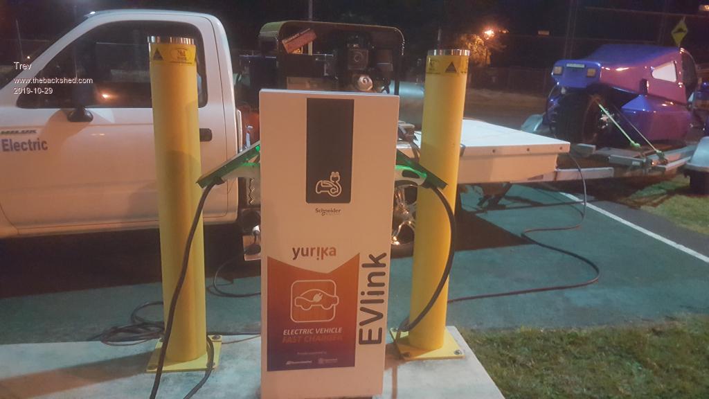 Time for a sleep while it charges. There will be no charge data on this one either as it is not controlled by chargefox. Free by the council of Macksville.