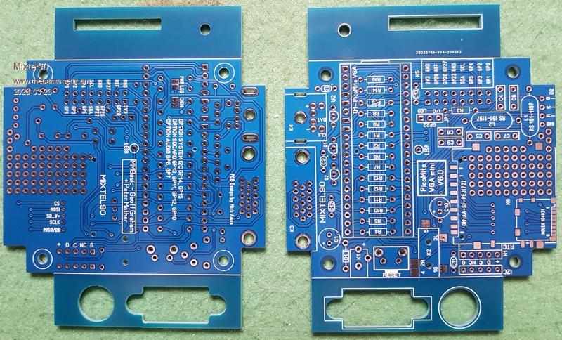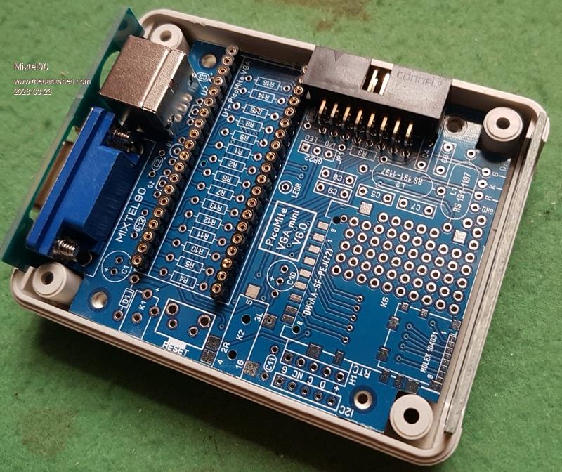 Oh, it's easy enough. That's up to the individual though. Personally I don't need a bevel. You could file a semicircular notch below the card but there's not a lot of space for one. This thing is pretty customizable. The "standard" bits are the VGA & PS2 sockets. Probably the IO port too and the power socket for sheer luxury.. Everything else is optional. I suppose you could even build a specialzed display point using only the VGA and power socket and with a HC-12 receiving data to control it from somewhere else. Incidentally, has anyone else noticed that you can use the same pins that the VGA uses to drice a (non-touch) LCD display for a non-VGA PicoMite? You shouldn't connect it via the VGA connector, of course, as you'd be putting non-compatible signals on the pins. I've got some of the stuff on the board now, but I'm searching for my bag of plastic boxes! I know I have a few left somewhere... I don't want to take construction much further as I'm at the point where I need to notch the bottom half of the case. It gets a bit more awkward when there is stuff that's preventing you marking the top surface of the board on the inside of the case so that slots can be cut to the correct depth. EDIT: I've found my boxes! A lot more PCB construction has taken place. A few more slight gotchas: C2 is too tight for a 1uF polybox cap. As I've nothing closer I'm using 100nF as it's relatively close to C1 anyway and I'm not after ideal noise performance from the regulator. C3 won't fit either - it's too close to the PS2 socket. However, the regulator spec says a minimum of 1uF and the reg is feeding into VSYS - which isn't far away and has 47uF on-board. Once again I've put in 100nF to help with the high frequency mush. ANOTHER EDIT: I now have a more-or-less working prototype. SD card and RTC aren't working. The former I can understand as I've probably got bad SMD soldering. The latter I'm not sure about - needs more investigation. All the case holes have worked out rather well, including one for the USB connector. Reset is a little "insert pointy object" hole. Maybe more pics later. YET ANOTHER EDIT: Bad RTC was a dead module. Some reflow work fixed the uSD card socket. Sound is noisy (as expected) but it's working ok. I've done the mod that uses the front panel red LED as heartbeat and it's ok. The on-board green still lights, but only just. The front panel green LED works properly when controlled by GP22. Audio will drive 32R headphones up to "too loud for me" levels. -------------------------------------------- I'm going to update the PCB to version 1.2, taking the above points into consideration. Most of this is done now. I'll update the construction pack soon, as I feel i should clear up some things in the manual too. I'm happy with it, and the current PCB can be used perfectly well if you already have some on order. . Edited 2023-03-25 07:07 by Mixtel90 Mick Zilog Inside! nascom.info for Nascom & Gemini Preliminary MMBasic docs & my PCB designs |