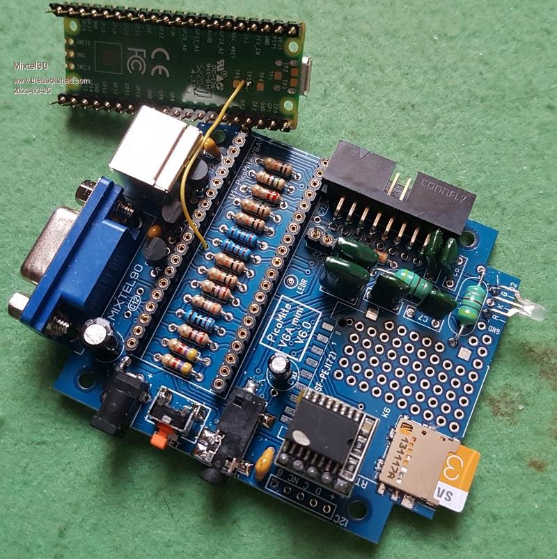 Mick--for the PicoMiteVGA Mini V6, I soldered on nothing but the headers for the Pico, the VGA and keyboard connectors, and the resistors. VGA works but my keyboard doesn't. This is a thrift store PS/2 keyboard which my wife bought, not known to work. Should there be anything else needed to make it work? ![]() (Nice little board, by the way--thanks.) By the way, are there any good demo programs available for VGA (non-game in particular, although vegipete's Crate-away or ChemiChaos would be about my speed). PicoMite, Armmite F4, SensorKits, MMBasic Hardware, Games, etc. on FOTS |