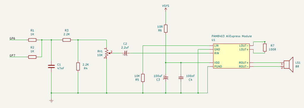 Thank you. That reminded me that I had had a problem before with the PAM8403: running, and if you turn up the volume too far. Also this thread for more PAM8403 issues/solutions: PAM8403 Maybe over-voltage was the problem there. Can you suggest the appropriate values for the resistors for fitting with a PicoMite? ~ Edited 2023-03-27 00:22 by lizby PicoMite, Armmite F4, SensorKits, MMBasic Hardware, Games, etc. on FOTS |