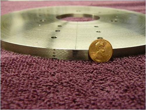 I turned out three-center points to increase accuracy in measuring tip-to-tip distance. Tip to tip is 1/16 of an inch. Blade run out measures 1/8 on an inch.