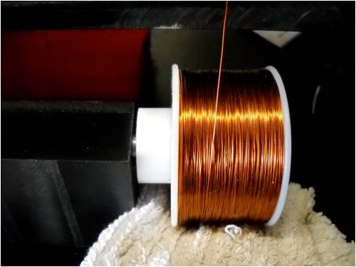 This shot shows the spool of copper wire and the rag underneath