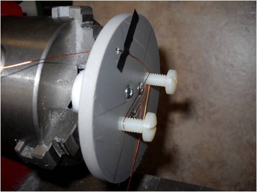 First off, I built a little gadget to wind the coils with using my lathe. As easy as this might sound, it was actually anything but easy.