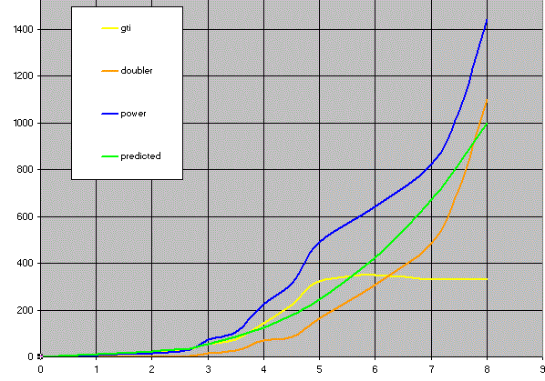The graphs are according to the legend, and the X-axis is windspeed and the Y axis is Power. I have included the predicted power from Allton's calculator. It is interesting that the measured power is significantly greater than predicted from the windspeed. I think that there is still a problem with measured windspeed, but it is a good start. Windspeed is probably measuring 1m/s lower than it really is. The GTI seems to be working. I think those without a grid, but RE battery, would get similar results running the alternator in star, with only main rectifiers and a cap doubler. A small reduction in top end max power may be evident, but the wind distribution and load usage patterns would determine if this was significant. I think I can say a good result. Gordon. PS: The graphs show no signs of any change in output at the high power levels with windspeed. This indicates that furling is not close to being effective. The windmill potentially has the ability to make more current still. Take care as i^2R losses can take hold very quickly. become more energy aware |