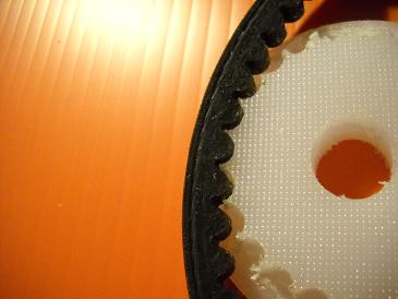 You've manufactured another quality component.How did you decide on the pitch of the "teeth".The picture shows the belt partially compressed around the gear.I think the belt will ride in and out of profile at different stages of drive and could leave you with the problem that prompted this alteration.I hope you'll accept my comments as observations not criticism.To my knowledge the belts are toothed for durability by reducing the repetitive compression (around the pulleys) and exspansion (straightening out) in opperation.Cheers Rastus see Rastus graduate advise generously