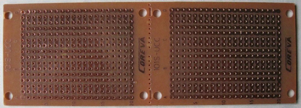 Jasper, Here is the JayCar prototyping PCB. I like this one since there are 3 holes in the horizontal strips. This better since you often need a 3 way connection. Len