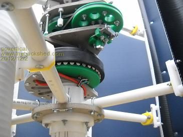 Hi, after observing the VAWT RPM and measuring the VOC in low wind conditions, I decided to mount a stock F&P stator on the 1 to 4 belt drive. I used a DIY 4 inch ID bearing so I could mount the PMA between the two blade rotors. Waiting for wind.