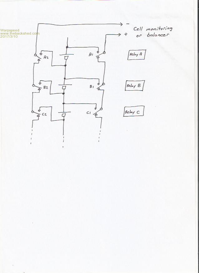 The first thing is how to connect up relays for cell monitoring/balancing in a fool proof way that cannot short out cells or misbehave, even if something goes desperately wrong with the relay sequencing.