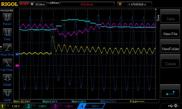 Part 5: Experiments with the control loop First a little review of some things that are important to understand. (forgive me if you already know what follows, and correct me when I am wrong, please) The inverter we are all building and hacking uses a closed loop control design which takes a DC sample of the output AC voltage on the transformer secondary. This DC voltage (Vfb) may have a lot of 100Hz ripple (if a full bridge rectifier is used, else 50Hz ripple), and unknown amounts of much higher frequency noise mostly coming from the full bridge mosfet switching of the DC supply. We need to filter Vfb to only let DC into the control loop. In another post somewhere I showed that the EG8010 IC only samples Vfb during a very short time compared to the 20 ms period of 50Hz output. I think I wrote that Vfb is sampled at the top of one half of the 50Hz output waveform, and the sample window is of the order of 10us. For the rest of the (20milliseconds - 10us) period, Vfb is not sampled. This means that we need to have Vfb reflect accurately what the output voltage is during that sample time. Vfb may go all over the place during times when the EG8010 is not sampling it’s value. The fact that Vfb is sampled synchronously with the output waveform might lead us to simple Vfb filtering designs which work fine on the test bench, usually with purely resistive loads. In the real world the current and voltage can be way out of whack. This will upset the closed loop control leading to over/under voltage of the output. So we have to low pass filter Vfb quite heavily to allow for large disturbances from various load types (switching power supplies, SCR controlled lights, motors, flouro lights etc) I have built a custom inverter prototype using the Arduino (ATMega 328) so as to permit complete control over all aspects of the inverter function. I can use any sort of digital low pass filtering of Vfb I choose. I could do the filtering in hardware but I prefer the flexibility of software. At last it’s time to look at some results of the closed loop output voltage control. I use a simple design: Vfb is fed into one of the ADC ports and is filtered to remove all the high frequency stuff. The 100Hz ripple is quite high, about 0.3V p/p riding on a 2.5V DC signal. I then sample this voltage about 2,200 or 8,000 times a second and apply some digital filtering to it. Then at the zero Voltage point in the beginning of each 50Hz output, I apply this filtered Vfb value to the PID control loop to calculate the needed PWM duty cycle %. Digital filtering is done in two ways. Method 1 is a simple single pole recursive low pass filter - 8,000 Hz sample rate a = the time constant, in my case a = 0.01. Initialise ma_ch0 = 0.0 the ADC input is named new_ch0 the filtered output is named ma_ch0 ma_ch0 = ma_ch0 * (1.0 - a) + new_ch0 * a Method 2is a 4 pole Bessel low pass filter - 2,200 Hz sample rate It needs a lot more calculations per sample but even on the Arduino it runs at 2,200 Hz let ch0 = the ADC input value At the end of these calcs the filtered output is also named ch0 xv[0] = xv[1]; xv[1] = xv[2]; xv[2] = xv[3]; xv[3] = xv[4]; xv[4] = ch0 / 2.259747797e+05; yv[0] = yv[1]; yv[1] = yv[2]; yv[2] = yv[3]; yv[3] = yv[4]; yv[4] = (xv[0] + xv[4]) + 4 * (xv[1] + xv[3]) + 6 * xv[2] + ( -0.7428578687 * yv[0]) + ( 3.1954036268 * yv[1]) + ( -5.1599230905 * yv[2]) + ( 3.7073065280 * yv[3]); ch0 = yv[4]; Those ugly coefficients are not easy to calculate and these come from a hugely helpful website at https://www-users.cs.york.ac.uk/~fisher/mkfilter/trad.html I used an Fc of 0.01 (e.g. 1000 sample rate and 10 Hz Fc) 4 poles, Bessel LP filter to get these numbers. With a cutoff frequency (Fc) of 0.01, and the 2,200 Hz sample rate, the -3db point is about 22 Hz. These two methods of LP filtering Vfb behave rather well with the PID control. Method 1 removes all the 100Hz ripple, as does method 2. The difference is in the details. All digital filtering creates a delay in the filtered output compared with the unfiltered source signal. This delay can really screw up the PID control loop if you let it get too long. Imagine if Vfb lagged so much when the control loop increases it’s output so that it starts oscillating..Bad things will happen. Method 1 gives a smooth result with acceptable delay. Method 2 gives a smooth result with less of the delay of method 1 which permits a faster responding PID control loop. I tried Butterworth LP filters but these have a unwanted overshoot on a step input. This means the filtered signal will follow Vfb as it rises and continue to rise a bit more when Vfb stabilises. Then return back to the correct value. Overshoot is bad when present in the input of a PID loop. So I was forced to use the Bessel filter which has no overshoot with small Fc values. Time for some pictures. yellow is DC bus current, dark blue is AC output voltage pink is PWM duty cycle % light blue is digital filtered Vfb as used by the PID control loop using method 1 It took about 10 cycles to settle Notice Vfb minimum is about 4 cycles delayed from AC output. ![]() using method 2 It took about 8 cycles to settle. Vfb minimum is not as delayed, it’s about 3 cycles now. Looking at the pink trace - PWM duty cycle - you can see that the control loop can assert control much easier with the shorter delay. It needs less time at max PWM to get the output voltage back up. Also I think I am letting some faster changes in Vfb through the filter and into the PID control. (think less attenuation of 10Hz signals compared with method 1) ![]() There is not a huge amount to gain in all this. I find this sort of investigation a great way to spend some time and it helps me understand what is going on. (pink and light blue traces are swapped now.) This is when it oscillated, due too too much PID gain and too much delay. I did not damage my inverter when this happened. I use current limited power supplies which lets me get away with murder. ![]() Finall