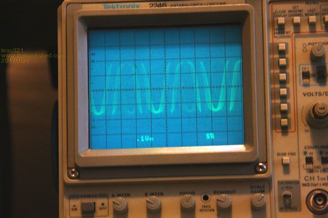 The one drawback with the 8010, is that if the voltage rises slowly, the chip will hang... and be totally unresponsive, so it needs a reset switch. I do this by a momentary switch that shorts the power to ground after the 120r input resistor.... crude but works perfectly well. This allows you to slowly charge the cap bank when installing it with say a 100r resistor.... the 8010 will hang, we reset ( short to ground after the 120r ) and we install with no brutal sparking. It also is the only way to reset the current shut down. I did this on purpose, as I want a person to reset from a current overload, in case there is a real problem on the line. Mine are always set well north of 10 kw, if you blow that there is something wrong I suspect. "Is it normal that System LED flashes in case of voltage too low/high or current shut down, regardless to position of on/off switch?"..... it is years since I looked at this or had a fault, and can't really recall what the true behavior is. I may get the heat gun out and have a look Those scope pics are not what I remember, but it relies on where you actually measure as to the shape of the waves on the output side of the drivers, and you may need a fet attached to see it, or the high side voltage pump will not work properly. Wow you have some gear there .........oztules Village idiot...or... just another hack out of his depth |