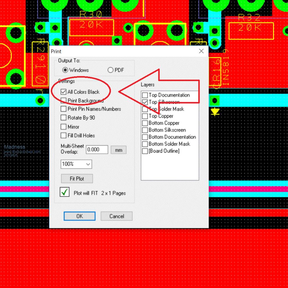 ![]() Hi Gary, how do you get that .gif image from your PCB layout program? I have tried to get a colour version of my PCB's printed from Design Spark but so far managed only B&W pictures which are useless. Thanks. The photo above was a screenshot that I cropped. You can print in colour by unticking the print setting that says print all colours Black. ![]() There are only 10 types of people in the world: those who understand binary, and those who don't. |