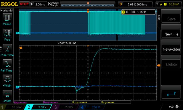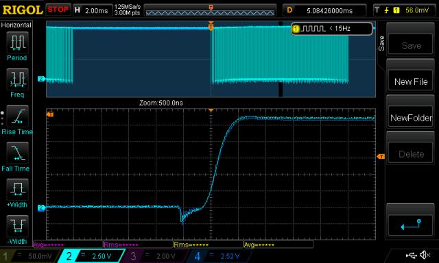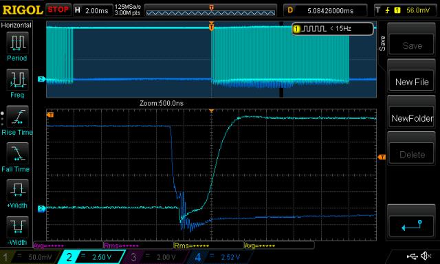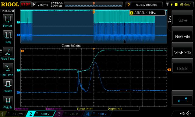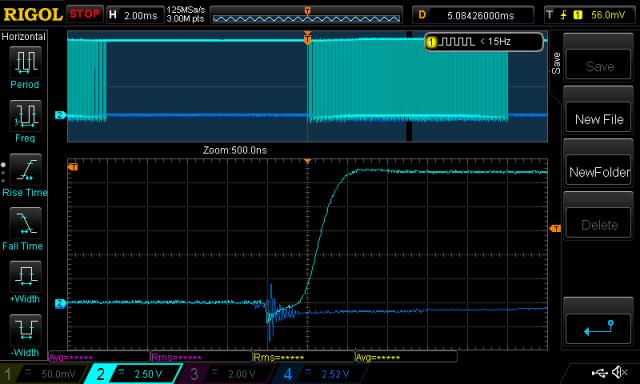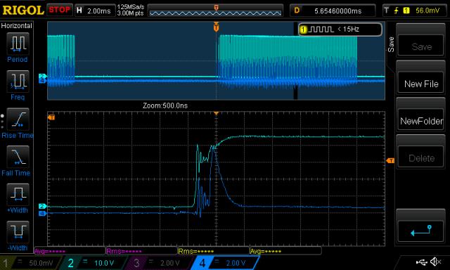 Good work Poida, want to make sure I understand this setup. Are the 0.4uH ferrite beads discussed here used in a normally configured Madness board or is this something recently added to the gates for evaluation ? If recently added, are there wave-forms minus beads which hopefully you could probably point me to them from a previous post somewhere ? Can you also confirm that there are no beads for these scope shots on the Drains ? The red spike at the beginning of the second graph is a surprise - havent figured out what is causing that yet. I assume it coincides with the turn off of the upper side FET ? If at first you dont succeed, I suggest you avoid sky diving.... Cheers Mike |