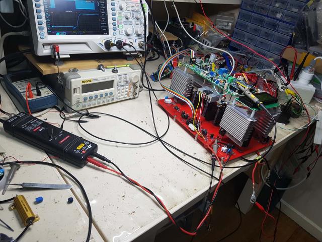 I just had a look at the high side gate voltage and current, in the middle of the 1/2 cycle, maybe about 5ms in from zero crossing. I have approx. 0.4uH ferrite beads on the gate pins of both low and high side MOSFETS. Other than that it is the normal test conditions (27.5V DC supply, 50uH choke, small toroid, "10" uF cap which is actually 6uF) The power board is Madness' board, with one HY4008 fitted at each leg of the full bridge. 10R gate resistors, totem pole drive, 5KR gate to Source pulldown resistors. First, the DSO saw this: Light Blue is Gate Voltage, DC coupled and referenced to DC ground. Dark Blue is Gate resistor current (the voltage across the 10R resistor) ![]() And we see non-optimal switching, with some oscillation. I obtained the values of this DSO capture and after a bit of Excel goodness we have: Black is Gate Voltage, Light Green is current and Grey is accumulated Charge The left hand scale is correct for current, the peak is nearly 0.8A, and it's scaled for charge, 0.4 = 400nC The time scale is in seconds, each marker = 1 uS. The switch event starts at 2.5uS and is all over at about 3.2uS. ![]() So it seems the HY4008 total Gate charge (190nC from the specs.) is achieved well after the oscillations. 2019-06-05_205516_NewFile1.xls.zip Here is the low side switch event at about the same time in the 1/2 wave (5mS) Note the lower current. ![]() and ![]() (different colours but we can deal with that..) 2019-06-05_211857_NewFile2.xls.zip It looks rather different, don't you think? The gate voltage clearly starts at some negative value (good, I like that for shoot through control) and powers up about as fast as the high side. Fuel for discussion. And this is by no means a critique of Madness' power board. I think it's a great board and I am likely to power my home by it in the near future. The ferrite beads are not part of the specified build and are simply present at this moment in time. I am exploring the effect of things I can do to the board. wronger than a phone book full of wrong phone numbers |
