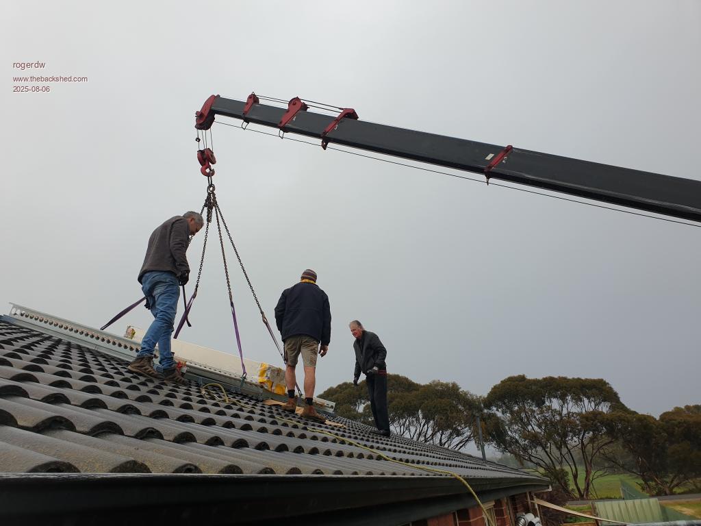 Well it's finally up there. Rescheduled for 8am this morning  ...  and took about 45mins from when the crane got here till it was in place.