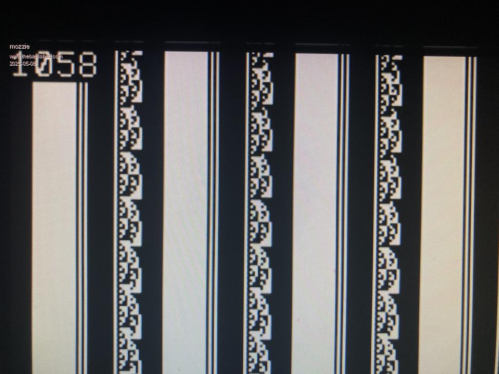 G'day, Volhout, hopefully this will help to diagnose your Wii controller / I2C issue. I do not have a Wii controller but a PICOmite thats pretending it is one. Peter, not sure if you are already working on this, you did mention a possible problem with the SDK... I think there may be a problem with the background or transfer software for the Wii I2C system. It seems the I2C return data from the Wii is working its way up through memory until it over-writes something terminal. Please see the photo below, the "WII" is incrementing byte 2 in the return variable and it is there in the pixel data, return data is &h0A,&h40,&hXX,&h00,&hFF,&hFF Possibly the array address is not being reset and is continuing to increment? this where it goes over my head... This is the code running on a HDMIUSB V6.00.02rc23 Option default integer Option explicit Option console serial Wii open Timer = 0 CLS Do Print DEVICE(wii ry), MM.I2C, Int(Timer / 1000) Text 0,0,Str$(Int(Timer/1000)) Pause 500 Loop End This is what is on the screen, the number in the corner is seconds from Program start: The "data" appears first, then coloured tiles, then coloured bars before it locks up (Mode 1), this was different runs. Starts at top left and works across and down. This is fom the "Wii" PICO, it shows the lock up at approx 20mins every time. > run A420 0101 Sent 0 started @ 02:34:44 failed @ 02:54:34 > run A420 0101 Sent 0 started @ 02:54:55 failed @ 03:14:31 > run A420 0101 Sent 0 started @ 03:14:55 failed @ 03:34:27 > > option list PicoMiteHDMI MMBasic USB RP2350A Edition V6.00.02RC23 OPTION SERIAL CONSOLE COM2,GP8,GP9 OPTION SYSTEM I2C GP20,GP21 OPTION FLASH SIZE 4194304 OPTION COLOURCODE ON OPTION KEYBOARD US, 0, 0, 600, 150 OPTION RESOLUTION 720x400 @ 283200KHz OPTION DISPLAY 33, 90 OPTION SDCARD GP22, GP26, GP27, GP28 OPTION AUDIO GP10,GP11', ON PWM CHANNEL 5 OPTION RTC AUTO ENABLE OPTION PLATFORM HDMIUSB > Hopefully this provides some diagnostic information, rc20 and rc21 are same. Thanks again for all the work you put in to this, it is much appreciated. Regards, Lyle. |