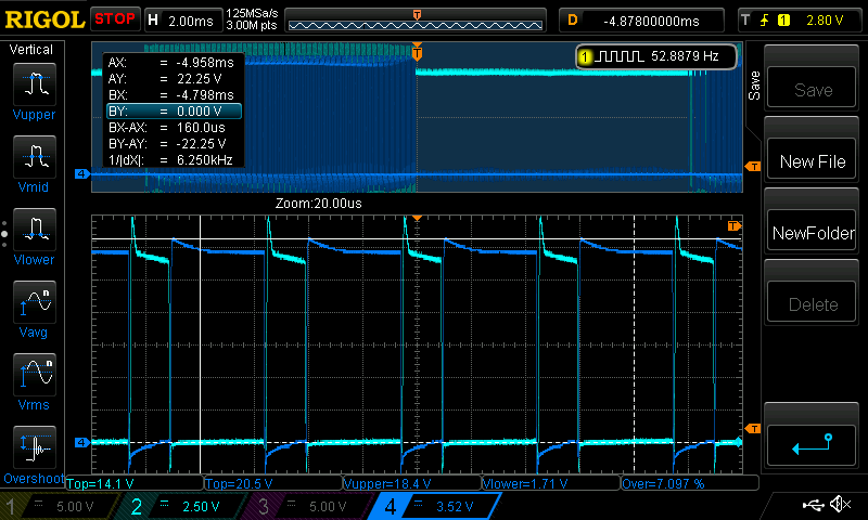 Here is the high side gate voltage of the Madness power board.