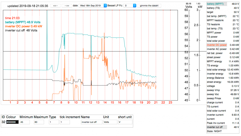 Now I have a scheme in place that takes the DC current and modifies the LV cutoff voltage, each time the calculations are run (every 2 minutes)