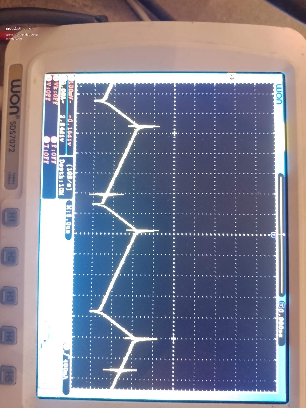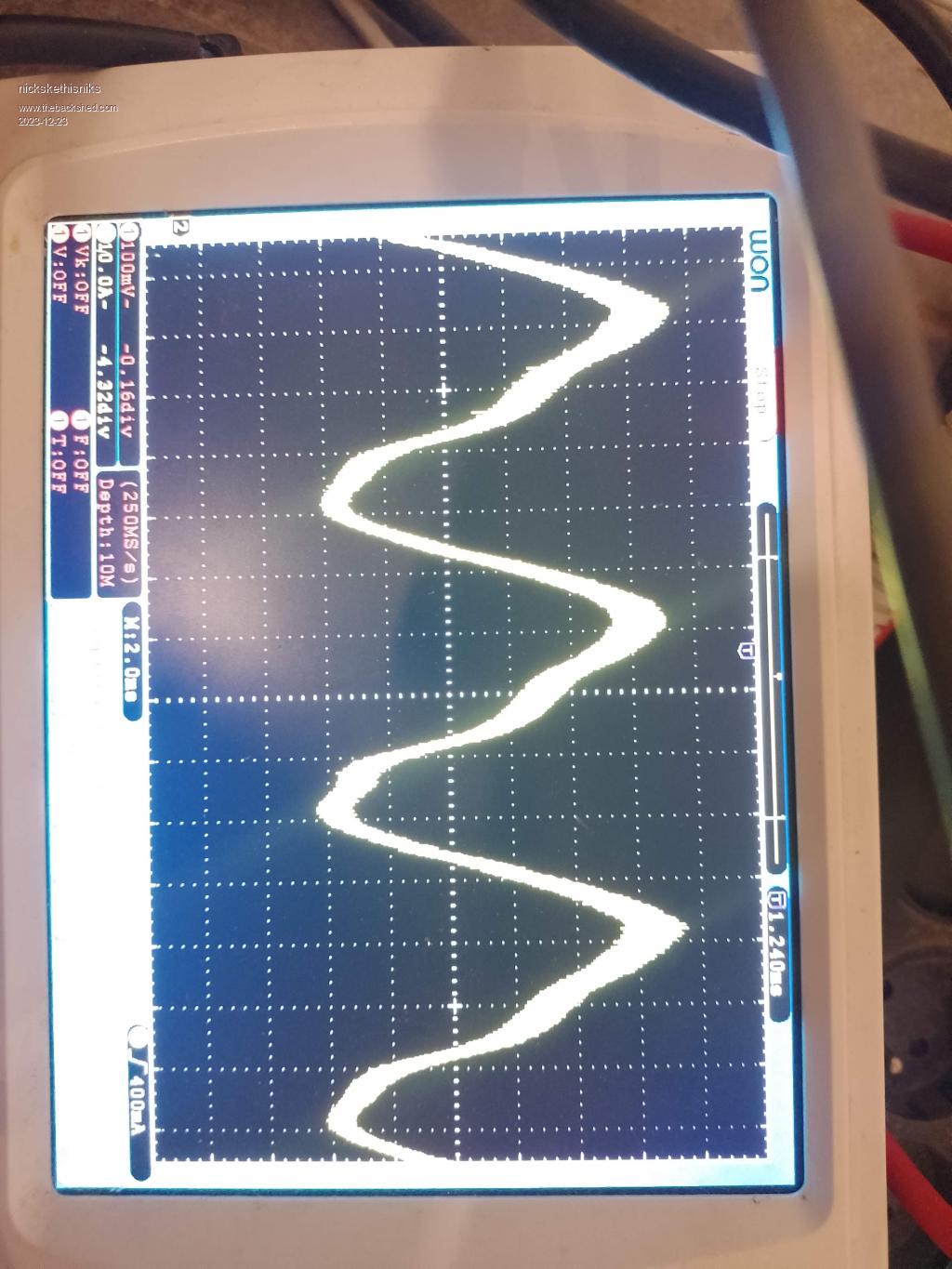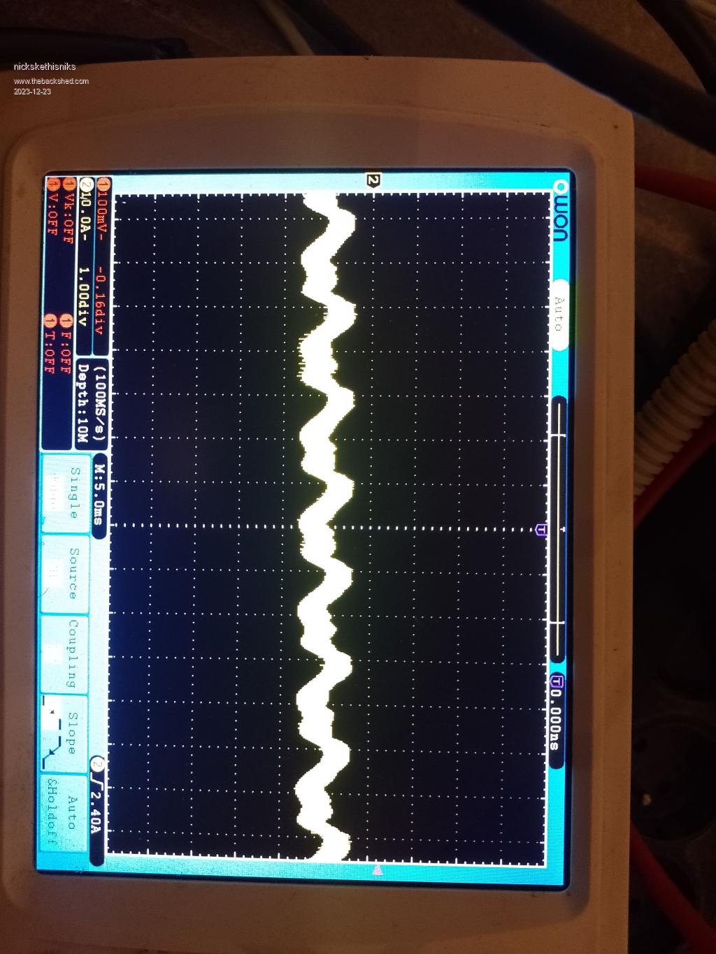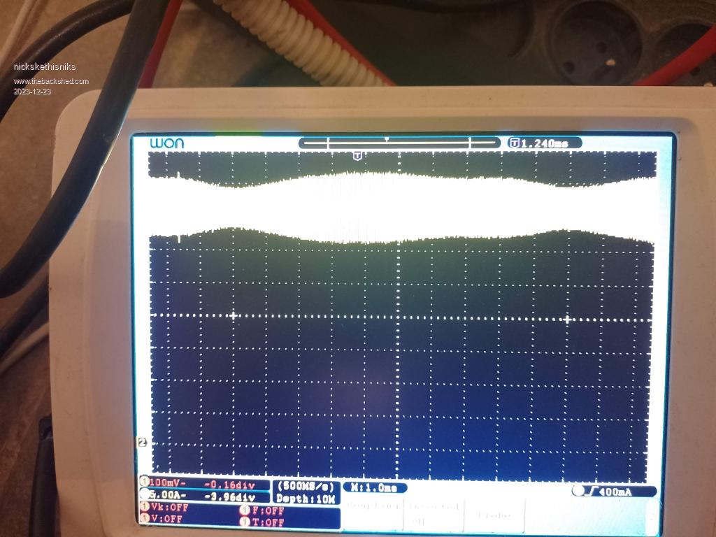 Then with longer timebase ( again polarity wrong) you clearly see the 100hz again