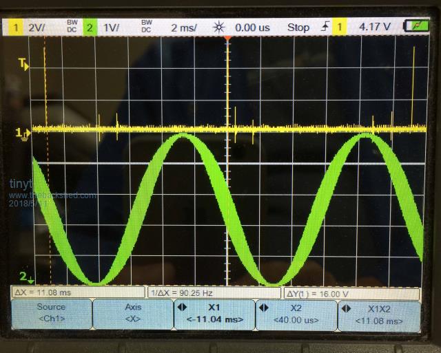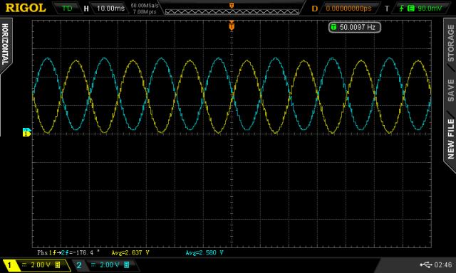 The resulting DAC output compared with a certain 110Vrms referance signal is shown in the attached scope shot (phase & frequency locked).