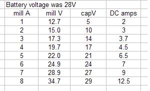 Gordon, I used the reactance calculations that are the basics of AC circuits. I know you don't want to "go back to school", but if you want to know more, here's a great primer on the use of the formulae: All About Circuits I agree, having done the math myself, that if you have one mill with 15 times the inductance as another, then the capacitor values required to optimize it will also be 15 times greater. One must be careful making this assumption, however, because the frequency/RPM ratio also comes into play. That mill requiring higher value capacitors to go with its higher inductance would also need to have 1/15 of the frequency per RPM, or else the speeds will not be matched. Your FP has how many poles? About 60 right? Bang on 15 times more than my 4 pole, which is darned lucky, isn't it!?