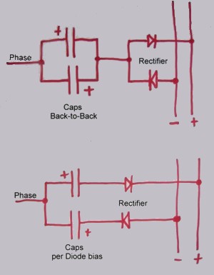 In the turmoil of coming to grips with the theory behind cap use, my suggestion to change the cap arrangement seems to have gone unnoticed. Flux has commented on the expected short life of caps used in the back-to-back manner and I feel this supports my suggestion. How about a pic as clarification.