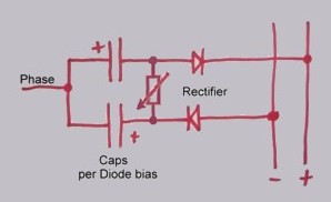 Hi Gill, The capacitors are not connected across each other. They are connected in series. The arrangement you present above presents a short in the caps. An electrolytic capacitor draws a lot of current when reverse biased. the caps I use are arranged + |cap1| - - |cap2| + I connect the two -v's together and the +v's are the connections in the wiring. I believe the extra current comes from the charge that is collected and discharged from the capacitors. This is seen as the voltage that appears across the caps that I measured and presented. The lowest impedance to discharge the cap when the polarity is reversed is through the rectifier. The process repeats twice in a cycle. The energy in a capacitor is proportional to the voltage across it squared divided by 2. The principle may only work with electrolytic caps. The output DC current seems to be correlated to the AC voltage developed across the capacitor. I am not sure of the general use for all alternators now. I have stated the need for the energy transferred by the capacitor to match the power of the windmill. The inductance and capacitance are inversely related. The tuning will be specific, yes, but usefulness will depend on a suitable capacitance to transfer enough power to be useful. Gordon. become more energy aware |