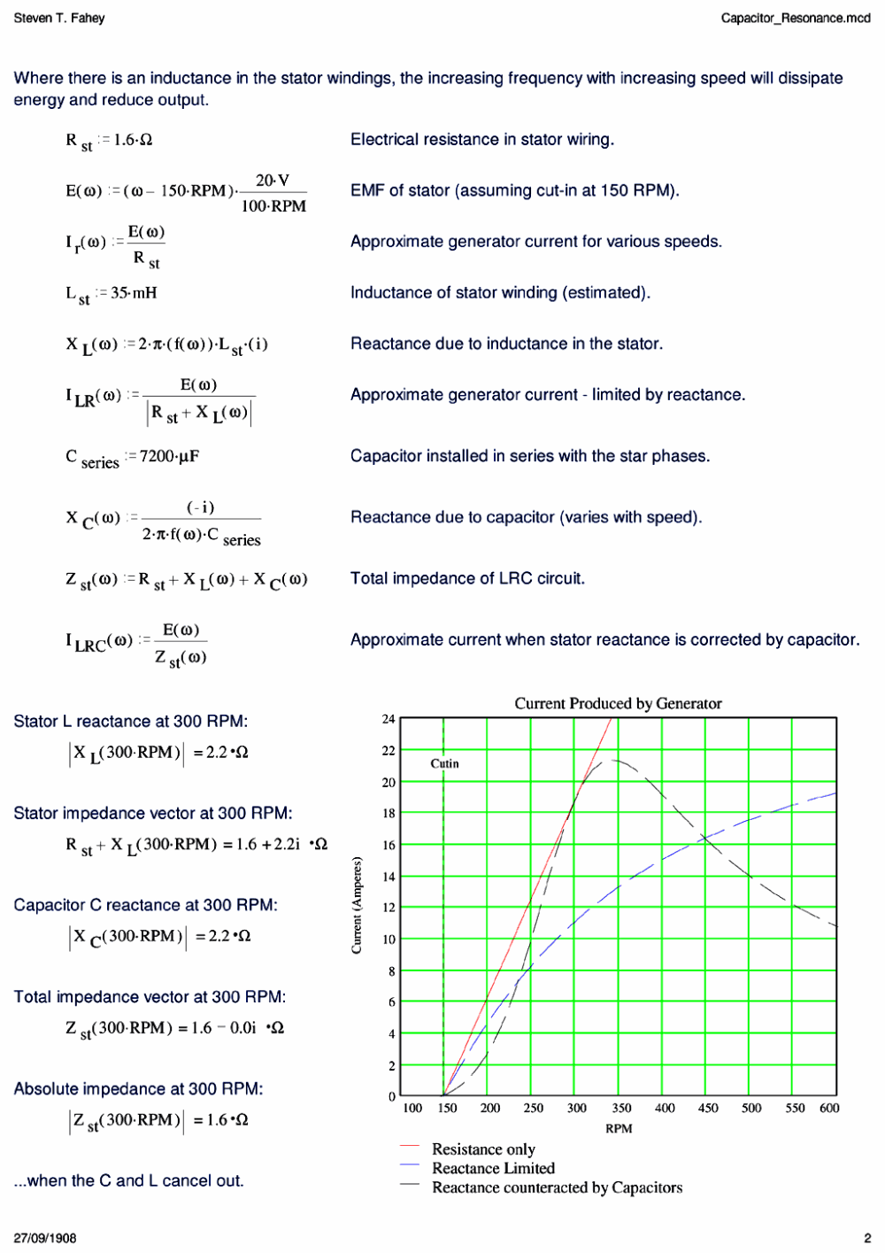 Hi sparweb, What happens to the AC voltage across the capacitor at resonance? I have measured an increasing AC voltage with increasing power. Does this correspond to the theory, or does the inductance vary similarly with increasing mill rpm, to counteract things. Gordon. become more energy aware |
