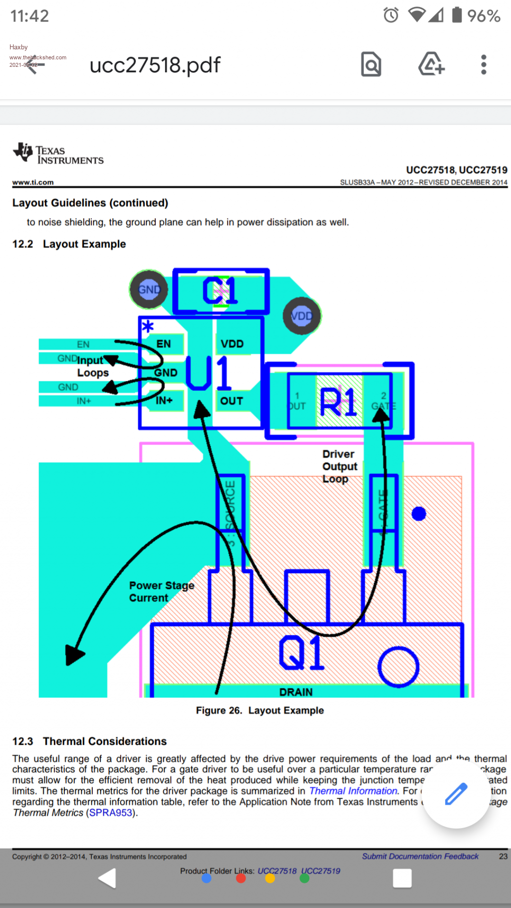 Double sided SMD boards will certainly scare away most hobbyists. Here is the example layout of the ucc27518 Solar Mike referred to: Single side loaded components and as big a tracks as you can afford |