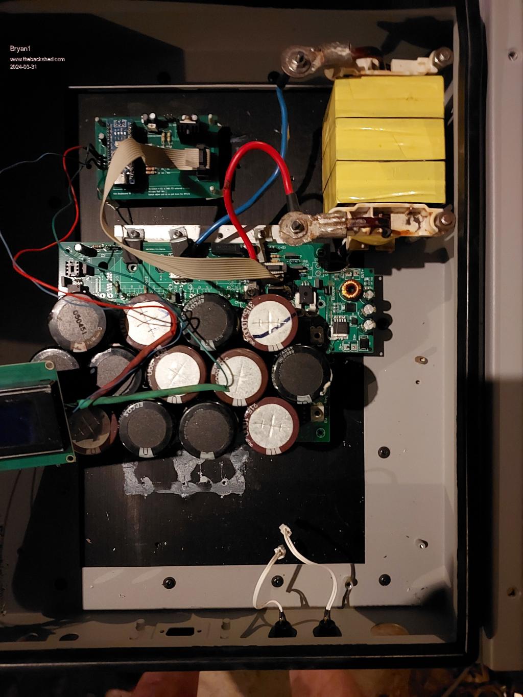 Hi Pete The solar rails are 4.7 metres long and I used 2 of them in line and with the 10 off 190 watt panels there is onlt about a metre left. In hindsight I should of used more and as I still need the panel clamps I'll use the feet off them to put and extra one in the middle of each rail. Now as those 250 watt panels will be heavier I know now so I'll use extra feet for them. Each foot screw does go thru the roof purlin and they did supply some 3/8" drive tek screws for the job. Now a month or so ago I did buy a uH meter from Altronics and got it out of the box today so I could measure the chokes I made. Now the one I made for that first MTTP measured 39uH and that other one only measured 3 uH so it got NFG written on the top of it so I don't use it again.As I do have a heap of those small toriod rings I'll make a new choke for the second MTTP using them and now I have that meter I can check. Now I did think about measuring that dual choke I made for my inverter but my longneck was just about empty so called it a day. Had a look at at my MTTP's and all I need to do is put that earth link on and install the fet driver chip then they are ready for testing. So in the morning the first job is fix the feet and break open my MC-4 crimping tool and make all the cables. I have drilled and installed the 10 cable glands on the terminal box and I still had just enough brass earth bar left to cut in half so 6x2 termination holes for both rails. I do need to drill/tap some M3 in the back of them so I can mount them on some fiberglass sheet. I have cutout the face plate on one grid tie box for the lcd and rather than making a solid mount for it I reckon some hot glue will do to keep it in place. As this grid tie box did use clamps on the heat sink I'll use them them to secure the circuit board rather than use screws as the hole placement of the diodes doesn't match the holes on the pcb. I do have a nice thick set of wires that I used for my 175 watt panels I put up 20 years ago and as they are already on the cable tray to the shed I'll use them for this 190 watt array. Now before I get ahead of myself I still need to make that earth busbar and I will tell the wife to go out so I can isolate the system when I install it. So once this 1.9Kw array is up I can finally show the wife those kaneka panels are well past the usebuy date as at best they only put 3Kw hours in a day. Then I reckon by ditching them our 60 amp outback MTTP can get some of those new panels put in as a replacement. But I do need to get on and find a new manual for it as it still programmed for those old sealed batteries. That SA32 Selectronic inverter has powered our home for the last 20 years and is still going strong so for now it will still keep going. I did test out those 2 off 175 watt panels I got via Foot(RIP) all those years and they are still outputting whats on the plate close to 5 amps each panel under full sun. These are Sharp panels and they will go on the 250 watt array as I will have space to put them in parallel as they will be great for charging that lithium pack when it turns up. Our house has been running off a 24 volt 600AH forklift I got for free that was close to brandnew in 2012 and with all this added solar I do think like my shed battery that got those free 6 190 watt panels it reformed the battery. I am going to price up a 48 volt 1000AH forklift battery as when I do get to make Mike's inverter it is time for us to upgrade to 48 volts and I reckon just hiring a reach truck to land the battery outside the shed will be the go so the battery can live outside under a lean-too. Where the SA32 can do the house load Mike's inverter can do the heavy lifting off aircons in summer and my wood work I've had in storage for over 20 years. Got a Elu spindle router that cost my Dad back in the day 3K and got a heap of gauge plate here to make new dies. As we have a heap of redgum here it will nice to finally get back into wood. Cheers Bryan |