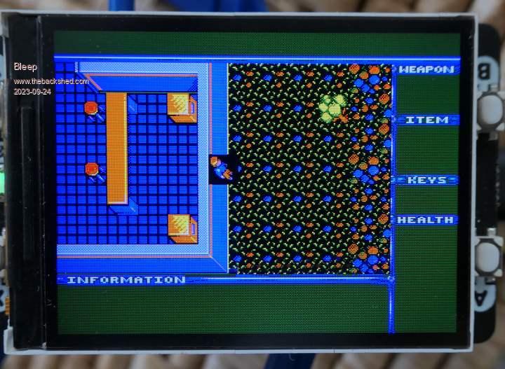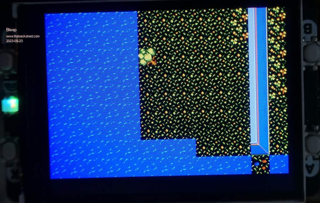Kevin Nice to see your Work in Progress.. let me guess ...Load the Layer.bmp to the normal Display.. Now switch to the Framebuffer do the Tilework temporarily capture the Area where the Player Sprite should be placed... draw the Player Sprite to its place the Framebuffer. use Peters new implemented command to copy just the area you need to see to the N screen should be BLIT FRAMEBUFFER F, N, 0,24,0,24,266,168 redraw the buffered area to delete the Playersprite and restore the Background,on the Framebuffer look if you can replace the missing Blit scroll -8,0 Command with blit 8,0,0,0,312,240 Sadly I have no working LCD Pico at the moment thats why I can not test it. its a Guess Cheers Martin Edited 2023-09-23 05:44 by Martin H. 'no comment |