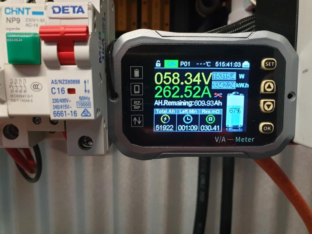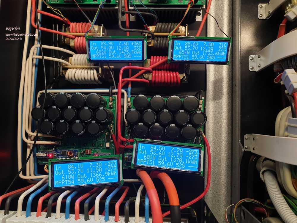 I've been really hammering mine the last week or so  ...  whenever there's any reasonable sun the Growatt GTI is running at 5kW for 6 or 7 hours a day  ...  and the Warpverter is running up to an additional 6 or 7kW. Any excess power is going into the battery and I've seen up to 170 amps charging at times.