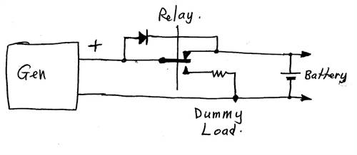 I dont agree with a few of Glenns comments with the best way to shed load (sorry Glenn but you know me) first to dump from the battery is what i see as unnecessary, and to use blocking diodes is also a waste, as Glenn has pointed out. The simple solution is to use 2 x 3 phase rectifiers (about $10.00 off ebay) one for connection to the batteries and one for the dump load, this way you eliminate the blocking diodes and also eliminate the need to dump power from the batteries.
