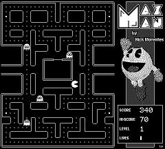 MaxMan 1.1 is here! New Features over 1.0... 1) Fast key response at the "Insert Coin" prompt for the start of a game. 2) Slightly more aggressive ghost chase intelligence. 3) Support for Wii Nunchuk with 100Khz and 400khz IC2 transmission speeds. 4) Fast loading of game screen via fonts file! This is the final version. Project finished. Enjoy!