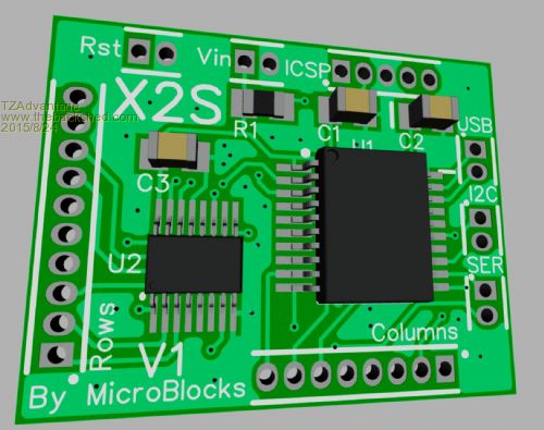 Jim, Good catch! I had them in my schematic before, but decided to take them out. They limit the possibilities. This module can be used for different purposes also. Like an Led matrix. Or a mix of switches and leds. Or maybe just as single outputs. Having the diodes mounted would limit its use, so i opted for having those on the pcb where this module will be put on. I also considered using a 1-16 analog multiplexer. Then only one output is active and all the others are in high impedance. This would need 4 pins of the PIC. There are also 1-8 multiplexers that need 3 bits but then i am one row short.Using those would not need diodes. I not rule out the 1-16 if more keys are needed. With this PIC i not have enough pins unless i sacrifice either I2C/Serial or USB. I also could use a 4 bit binary counter and connect the outputs to the input of a 1-16 multiplexer. That would also require only 2 pins from the pic. Hmm.... a 16x8 matrix. I will have to think about that a bit. I'll get some chips and test that too. :) Microblocks. Build with logic. |