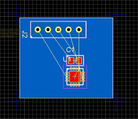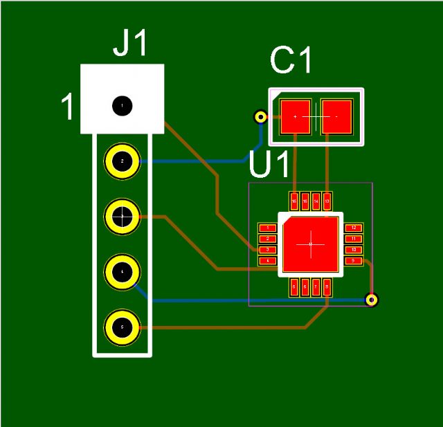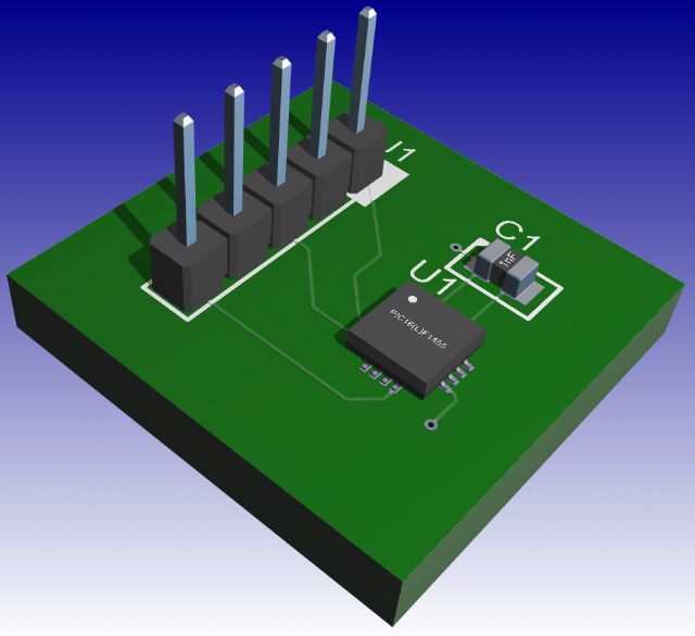 Then I drew the schematic with a 1nf cap (0805 footprint) with a 5x1 Male header (one of my earlier parts in my libraries)