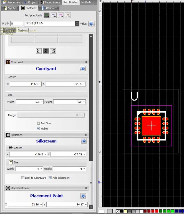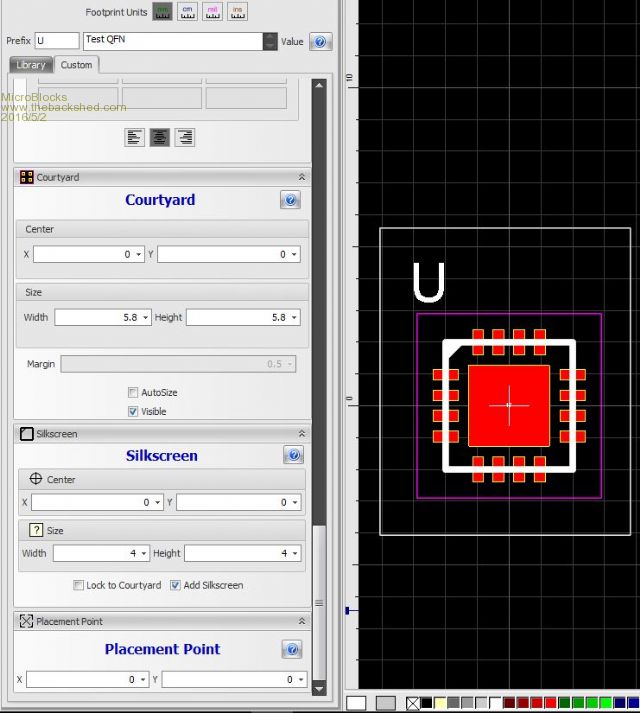 MicroBlocks said   I made the 'QFN' the same as you did. Selected a TQFP and then selected the leadless checkbox under 'Parameters'.