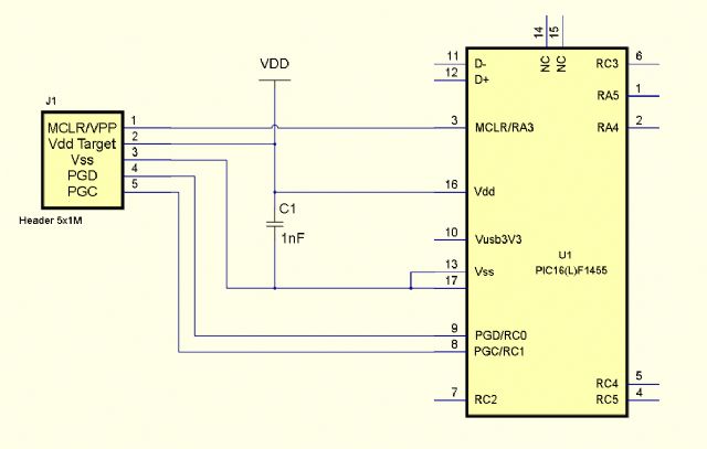 Placed it on the schematic with a header, capacitor and a Vcc terminal.