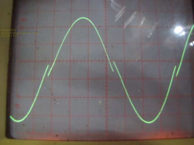 Madness, perhaps I found a clue to your sine wave distortion problem. Did you try to run the inverter without that big ferrite choke in the primary circuit? I saw that my small test inverter had a badly distorted 240V wave form when I used a ferrite choke I had just quickly wound for my testing. No distortion with no choke at all nor with my big 60mm sq wire one. Klaus |